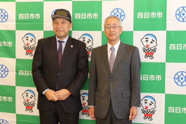 来月2日のNPO法人ドラゴンズベースボールアカデミー四日市市校開校に伴い、中日ドラゴンズの吉川克也社長らが11日、同市役所を表敬訪問しました。