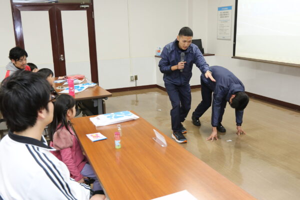 親子は最初、会社概要や主製品のベアリングの役目、同社が多度山で取り組む森林保全活動、清掃活動についての説明に耳を傾けました。