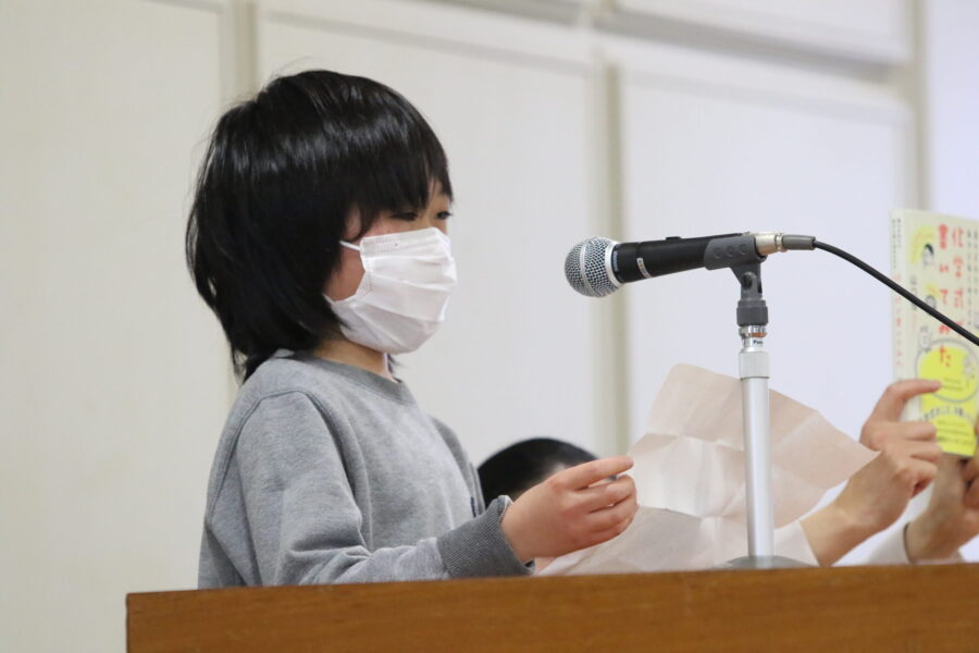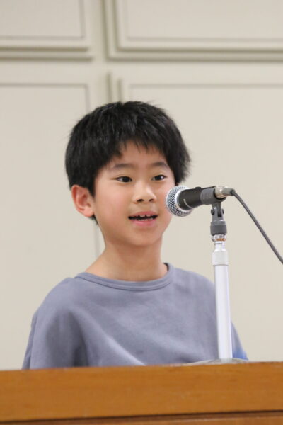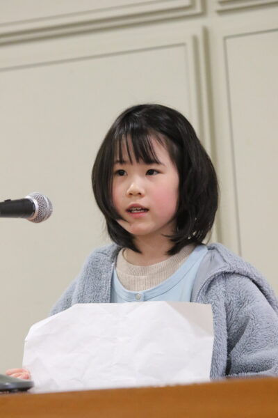 会は文章読解や発表などの表現技術を重視したフィンランド式国語教室てら小屋遊学舎(日下由紀子代表)が開き、『人に行動を起こさせる話「おススメのもの・こと・人」』を主題に園児から高校生までの48人が参加。ピエニ(園児・小学低学年)、高学年、中高生の3部に分かれ、発表しました。