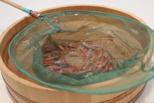 『金魚美抄』は、透明樹脂の上にアクリル絵の具で色を重ね、リアルで立体感のある金魚を描く深堀隆介さんを筆頭に金魚をモチーフにしたアクリル画、フェルト細工、ミニチュアなどを11人の作家が176点を出展しています。