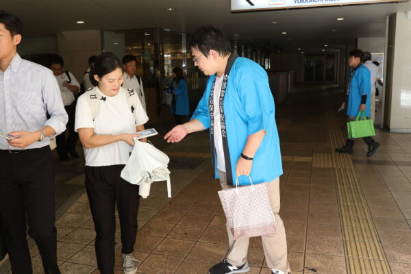 写真は啓発物の配布の様子