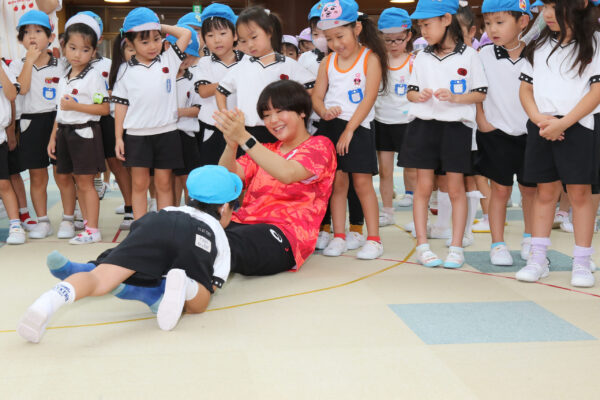 2024/09/0324/09/03 園児が連勝阻止? パリ五輪レスリング金メダリストの藤波選手が卒業園を訪問