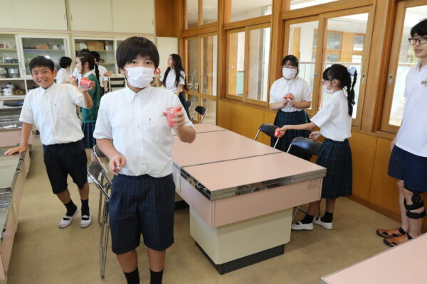 家庭科の授業の一環で実施され、食品メーカー明治中部支社の管理栄養士稲垣里紗さんが講師を担当。発酵食品の歴史、発酵の仕組みなどについて説明しました。