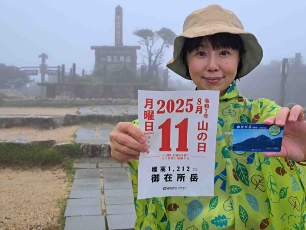 11日の祝日『山の日』に合わせ菰野町湯の山の御在所岳山頂で記念カードや日めくりカレンダーが配布されました。