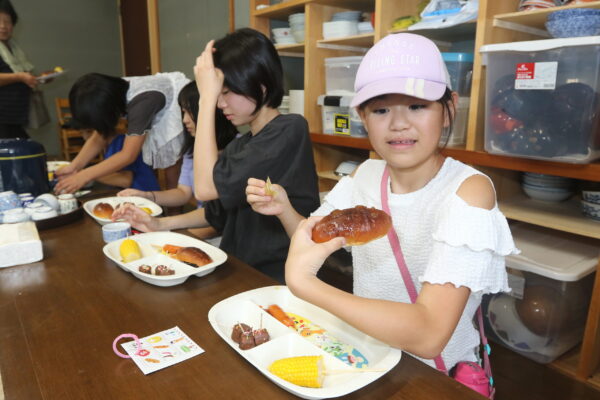 食事は夏祭りらしい、蒸しトウモロコシ、フランクフルト、チョコバナナ、かき氷などが振る舞われました。