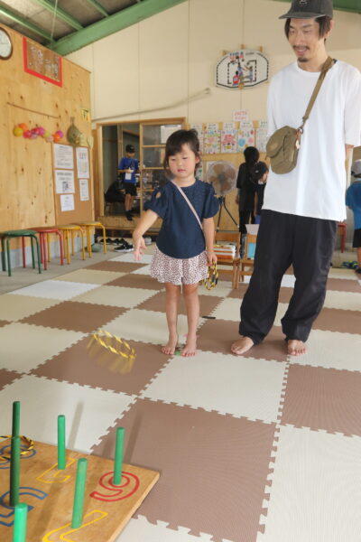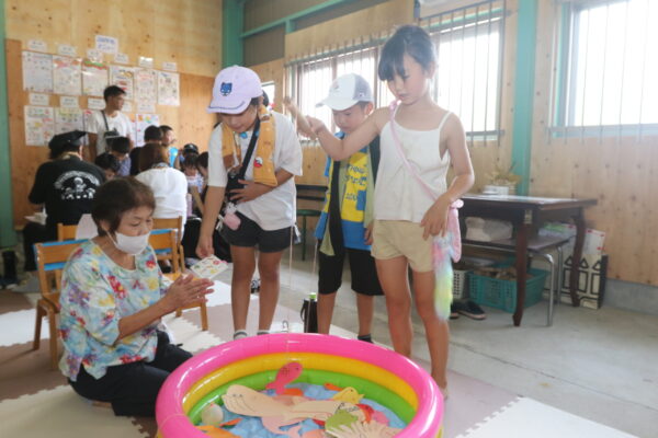 食後や食事会場の待ち時間には、輪投げ、紙製魚釣り、くじ引きにも興じていました。