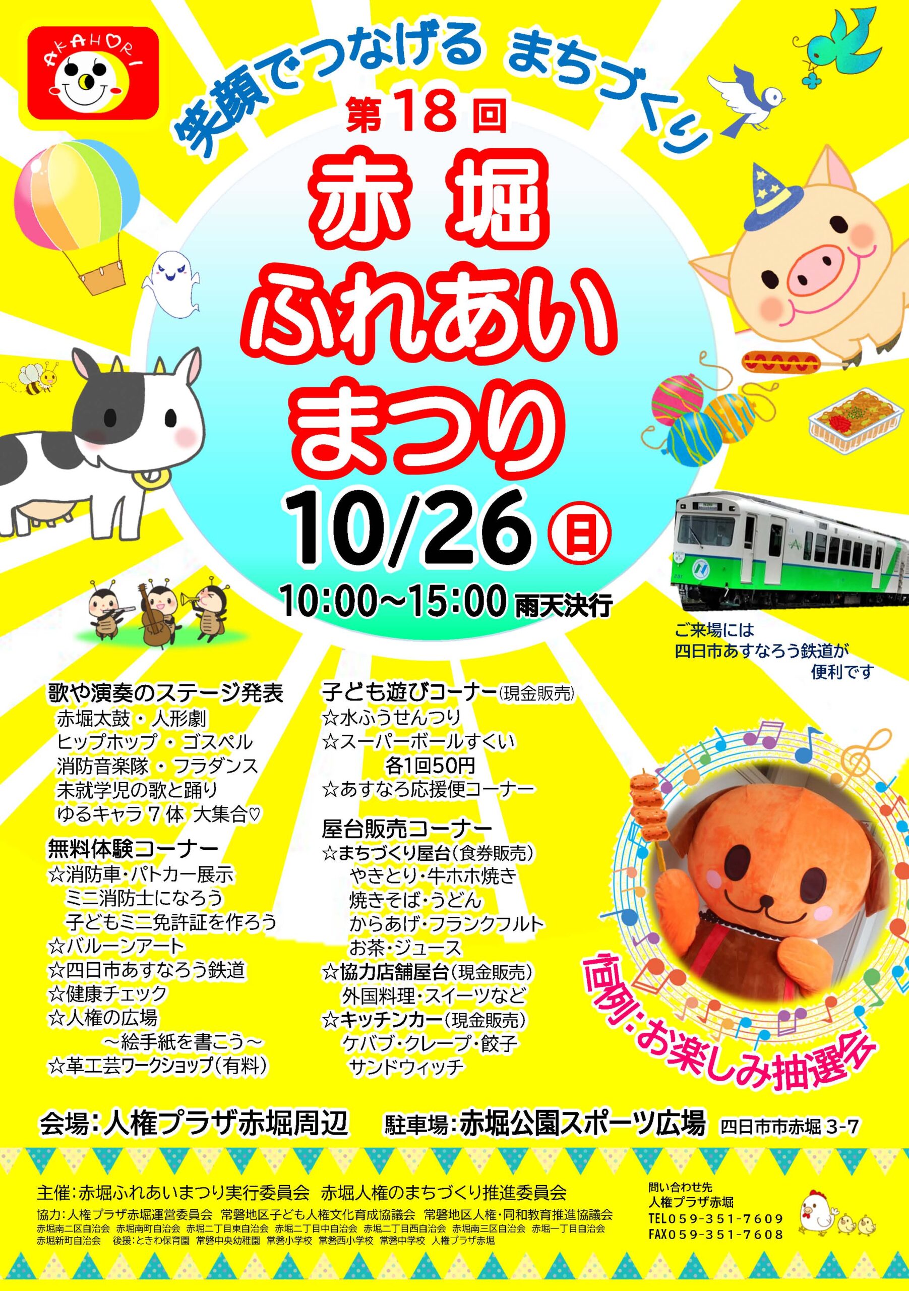 四日市市赤堀2の人権プラザ赤堀周辺で10月27日10時から、赤堀ふれあいまつりがあります。
