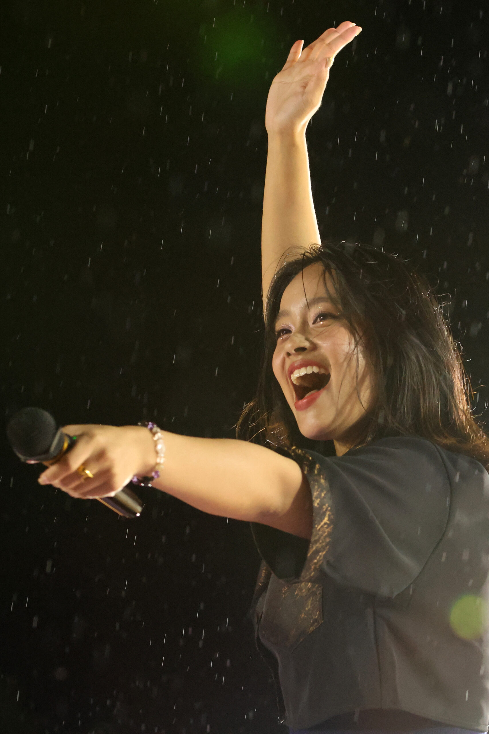 曲に合わせて、角田さんらが無数のシャボン玉を夜空に舞わせました。澄んだハイトーンボイスとライトに照らされきらめくシャボン玉の幻想的なコラボレーションに、観客を酔いしれていました。