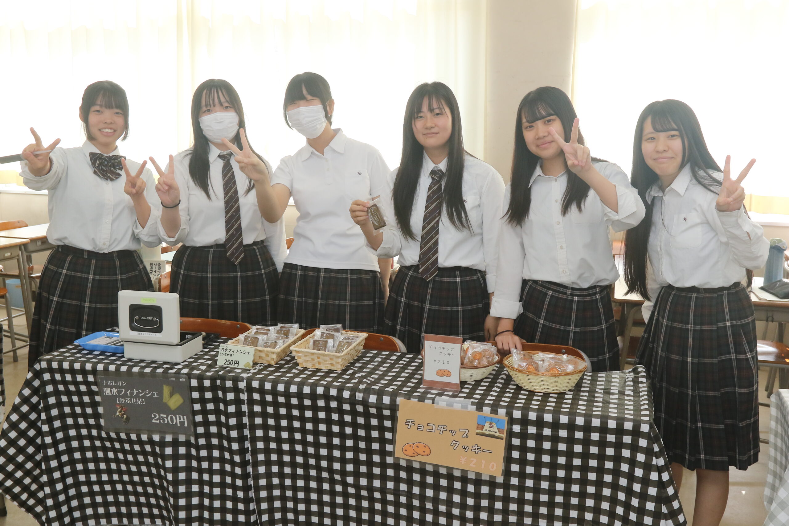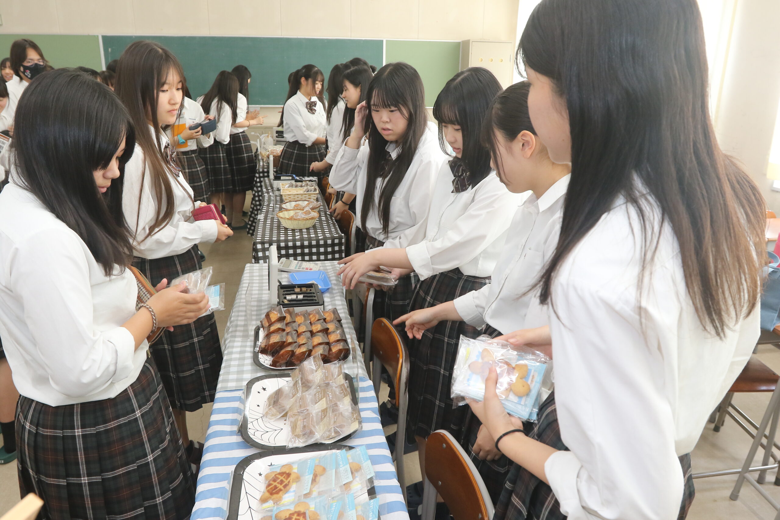 四日市市の四日市商業高校3年生17人が2日、校内で菓子販売の実習に取り組みました。