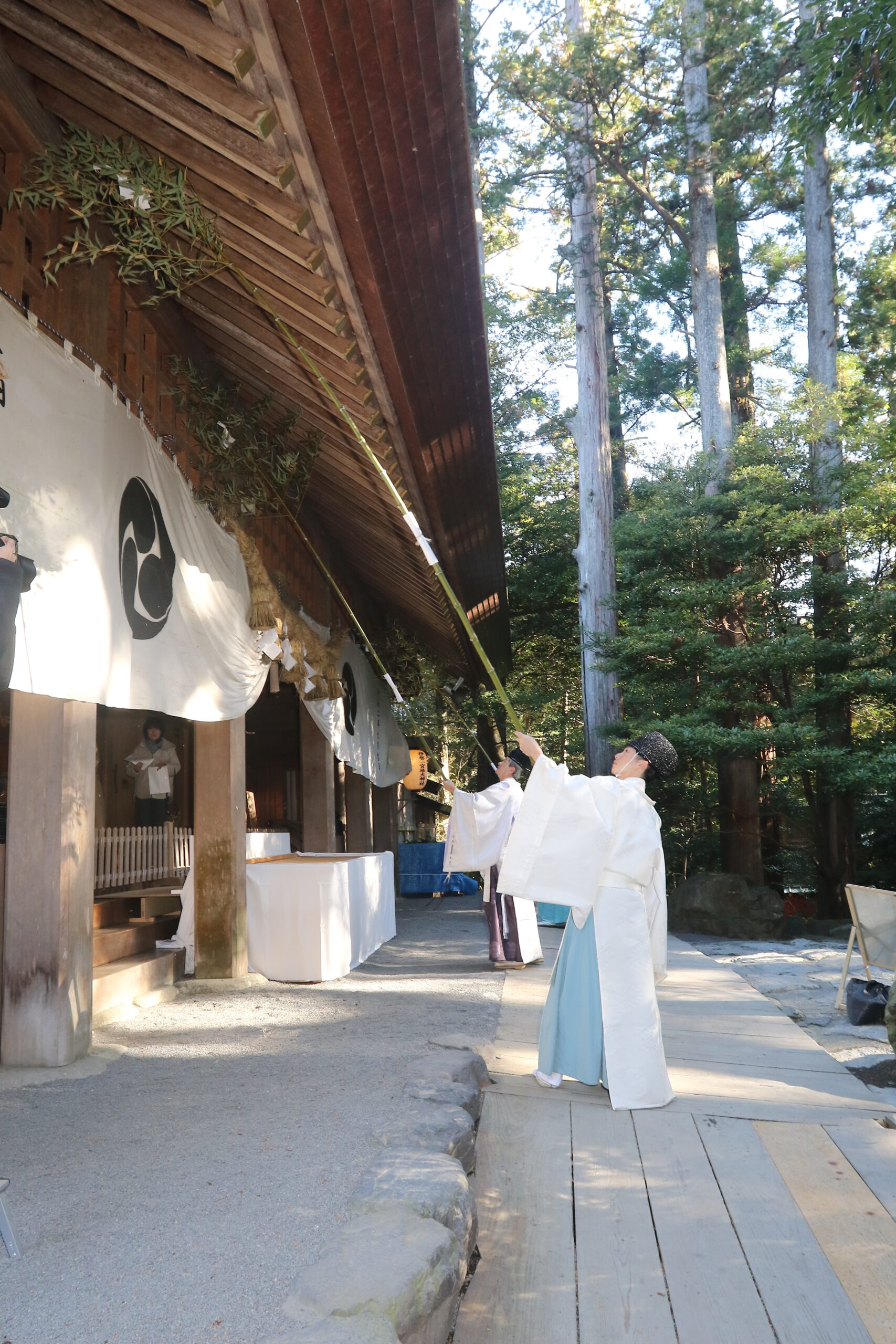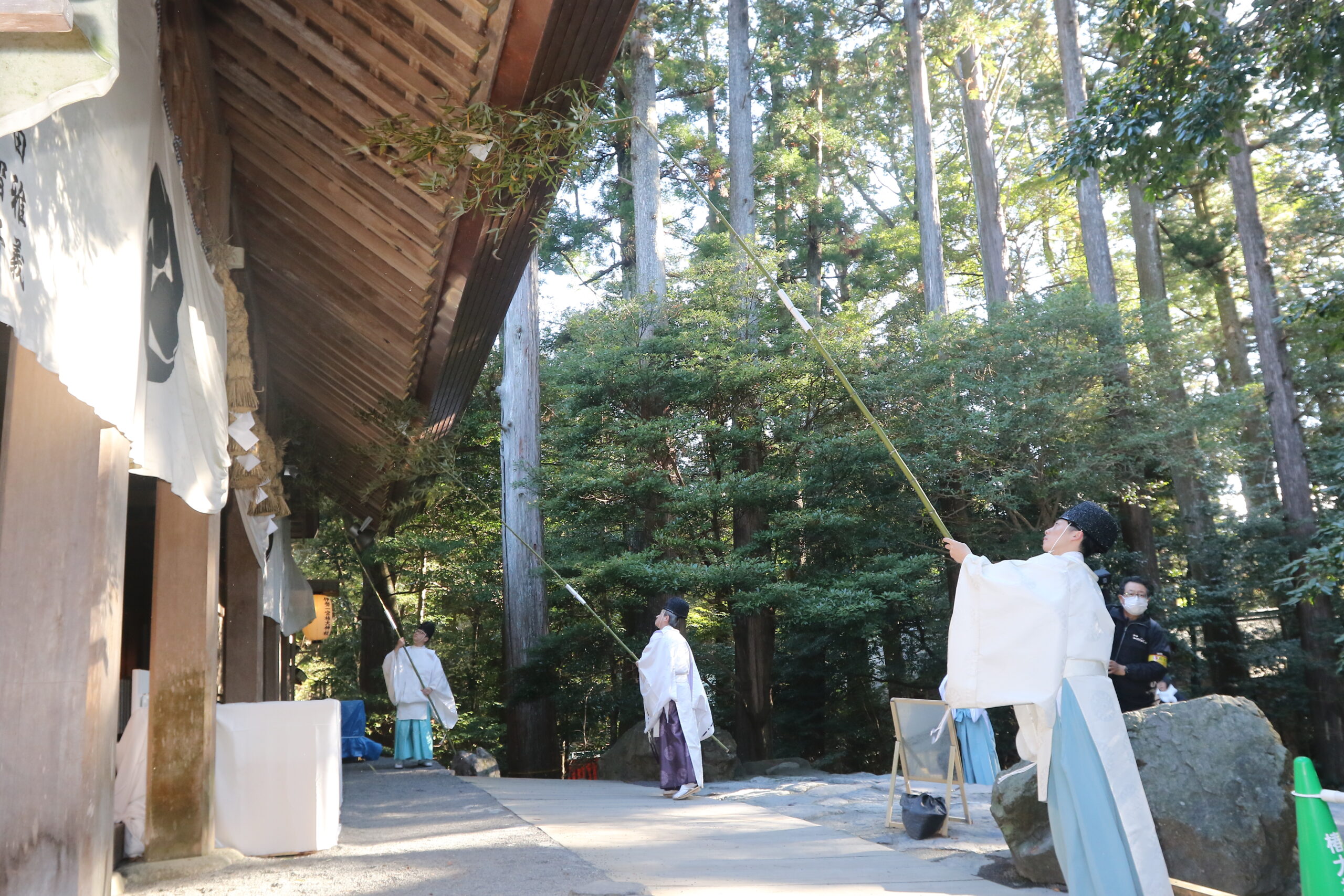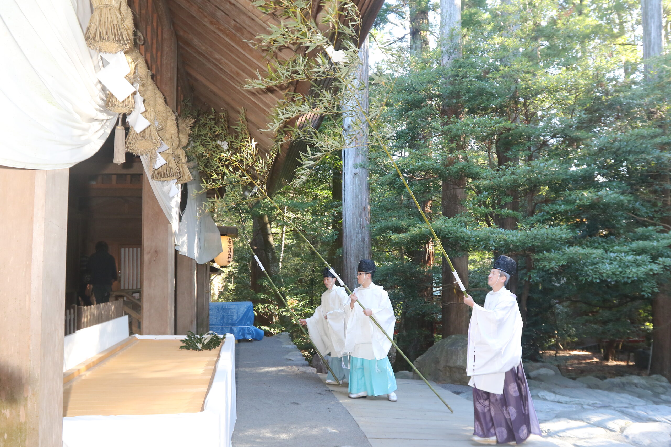 鈴鹿市山本町の椿大神社(山本行恭宮司)で13日、新年を迎えるための煤掃(すすはら)い式が執り行われました。