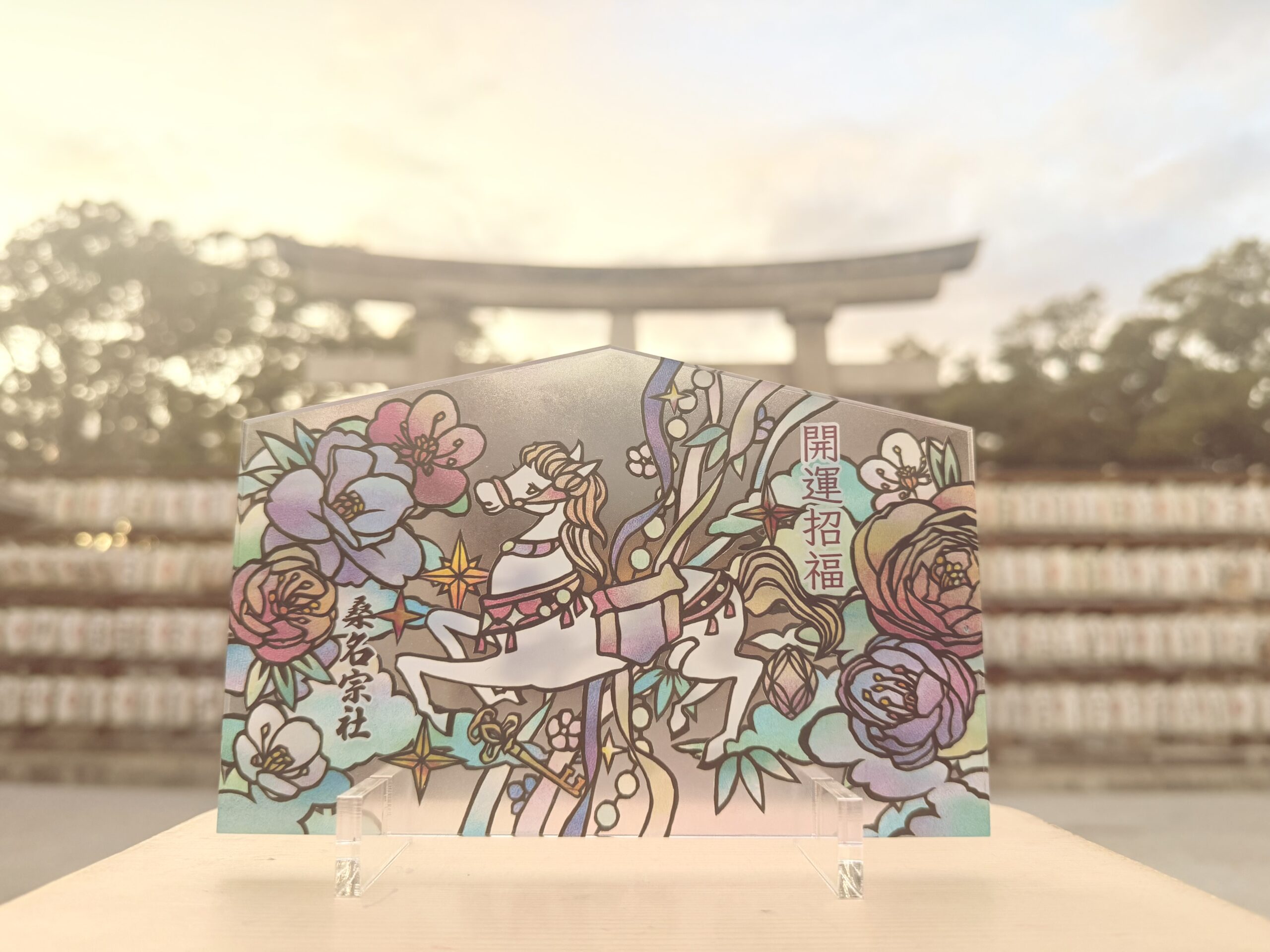 桑名市本町の桑名宗社(春日神社)は切り絵作家のデザインしたアクリル絵馬『宙彩(そらいろ)絵馬』を授与しています。
