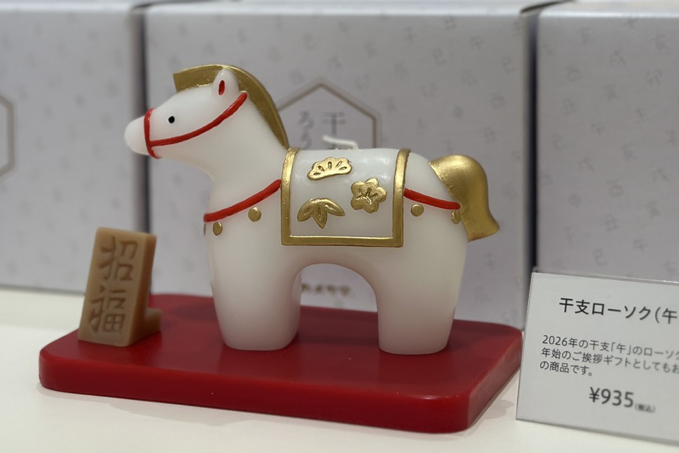 亀山市のカメヤマローソクタウンでは馬をモチーフにした干支(えと))ローソクを販売しています。価格は935円、限定300個です。
