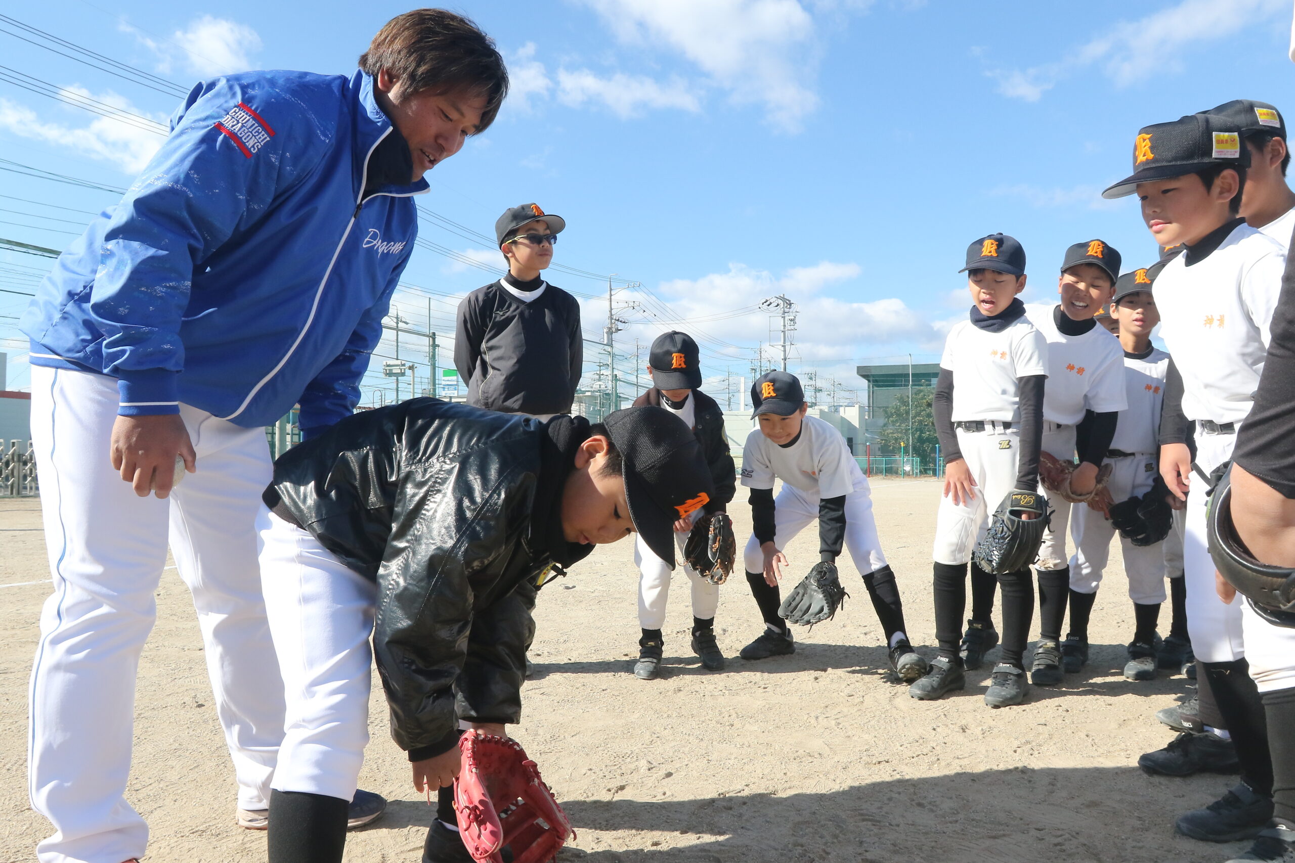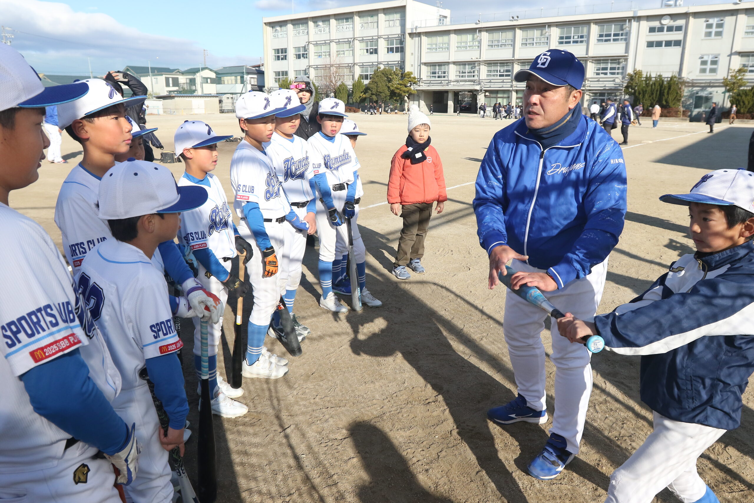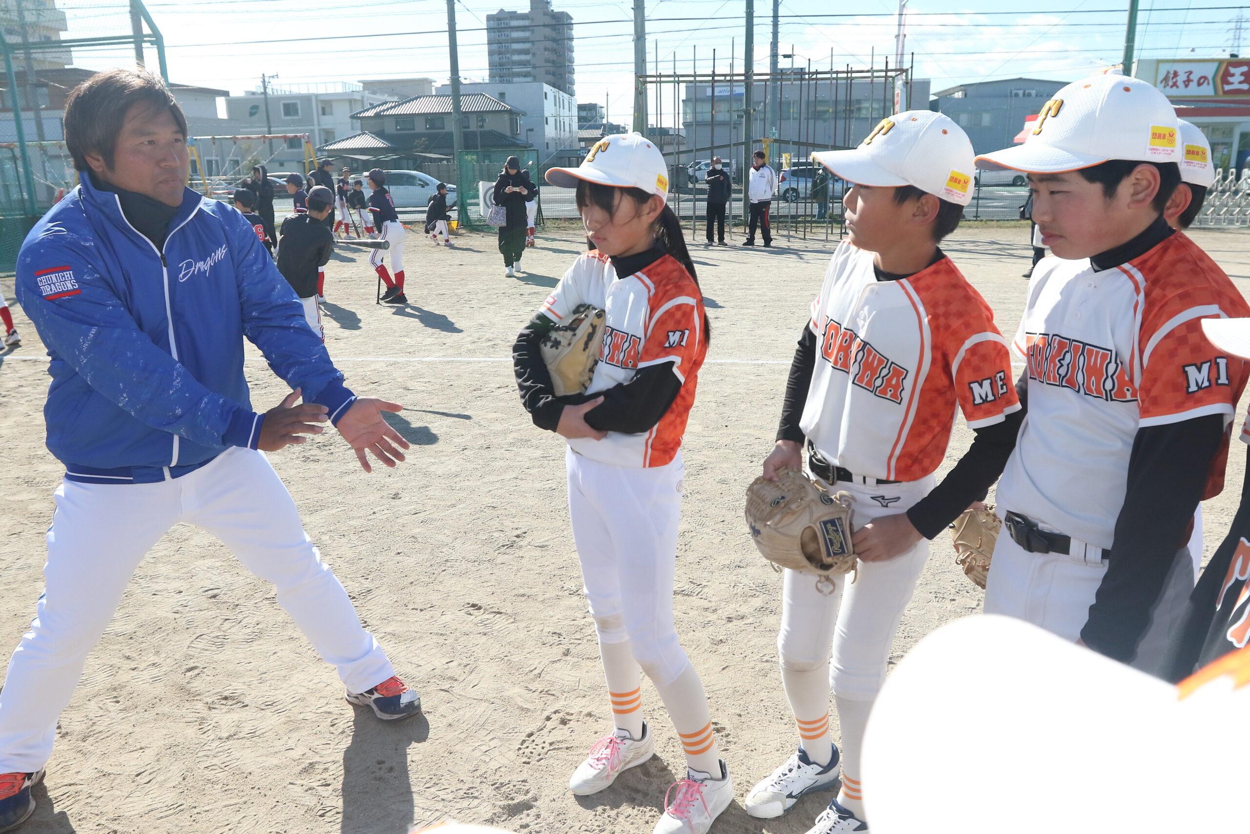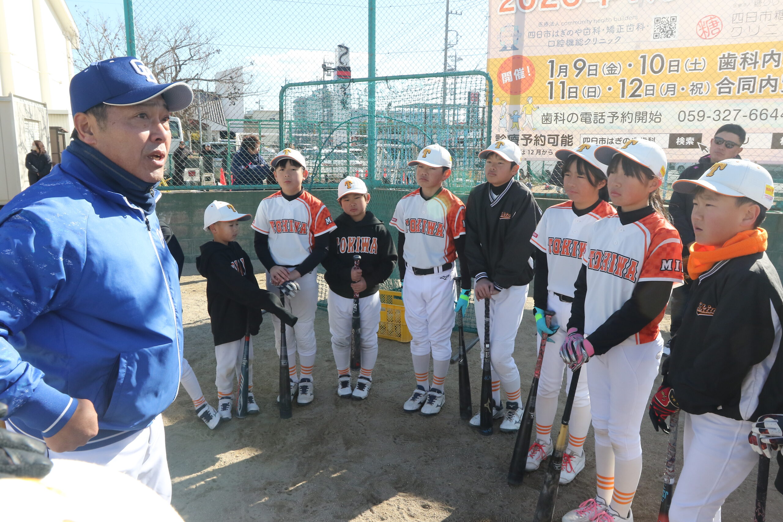 2026/01/1226/01/12 ドラOBが指導 四日市市の常磐小で野球教室 歯科・内科開院記念で