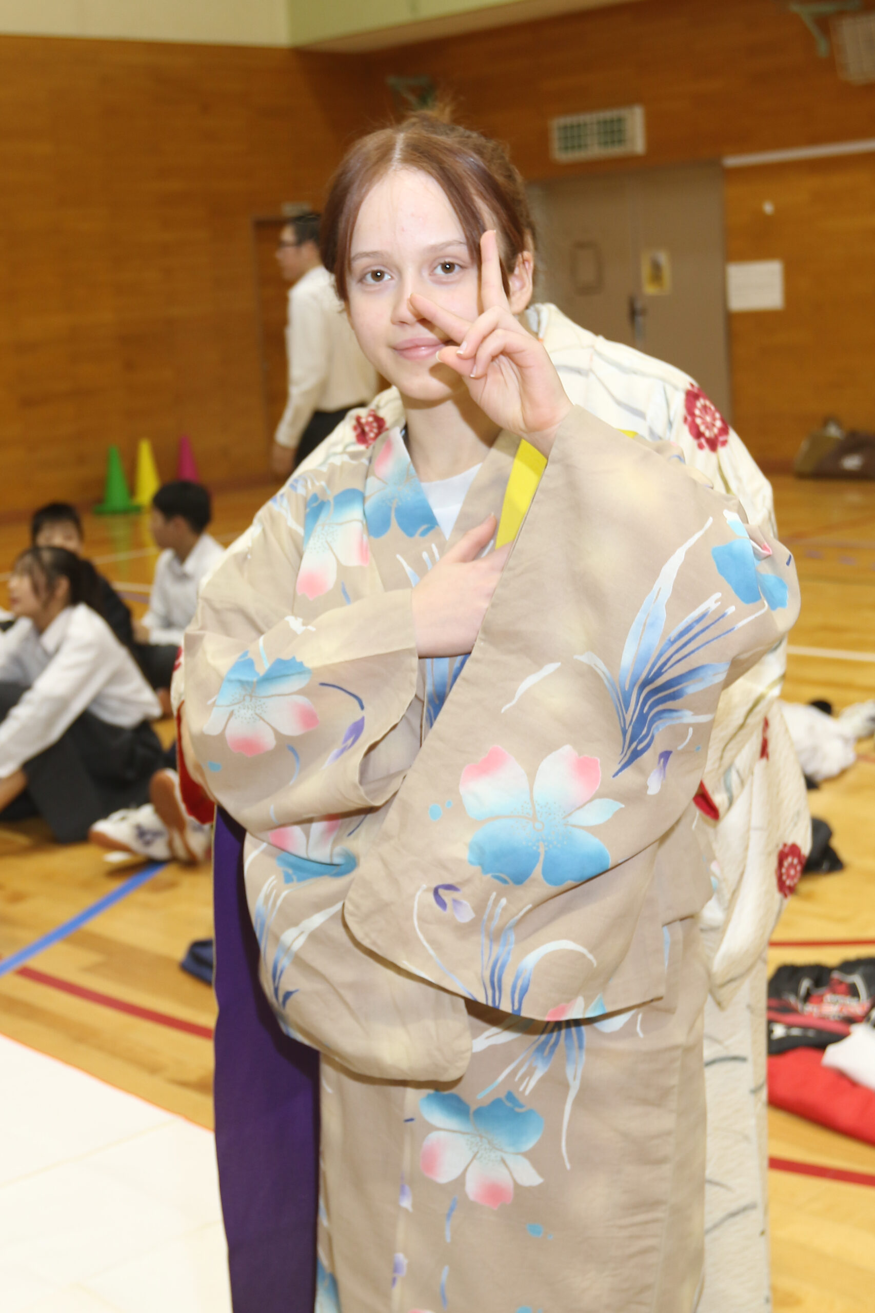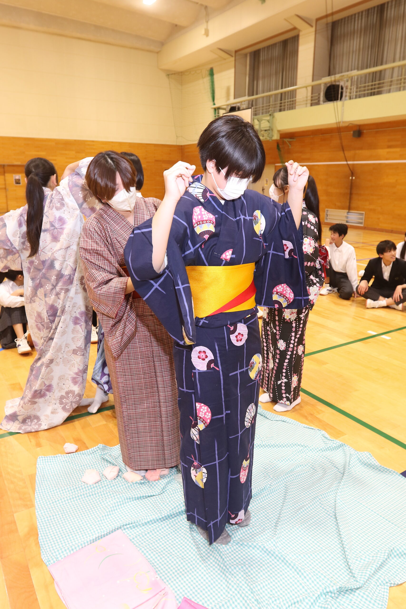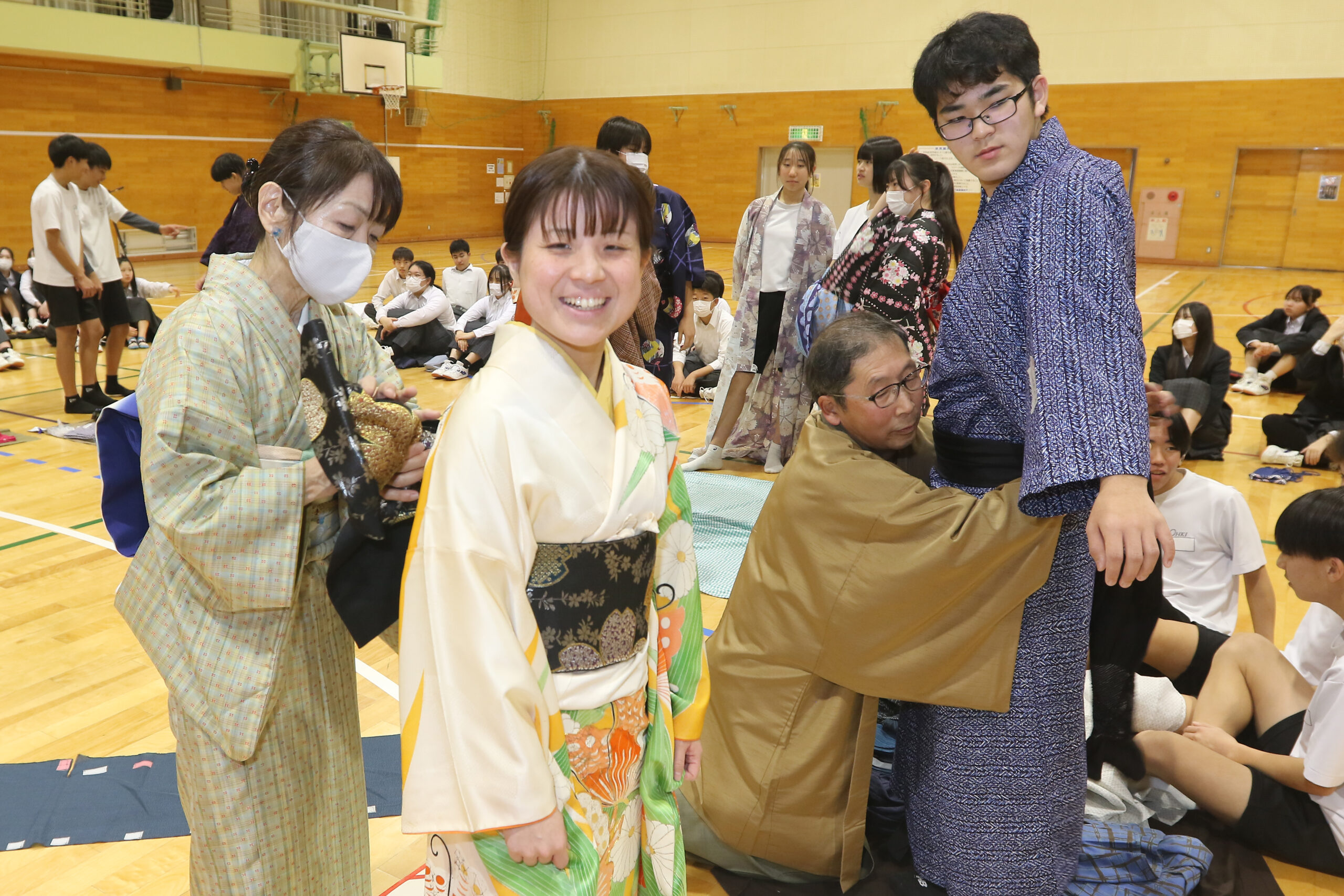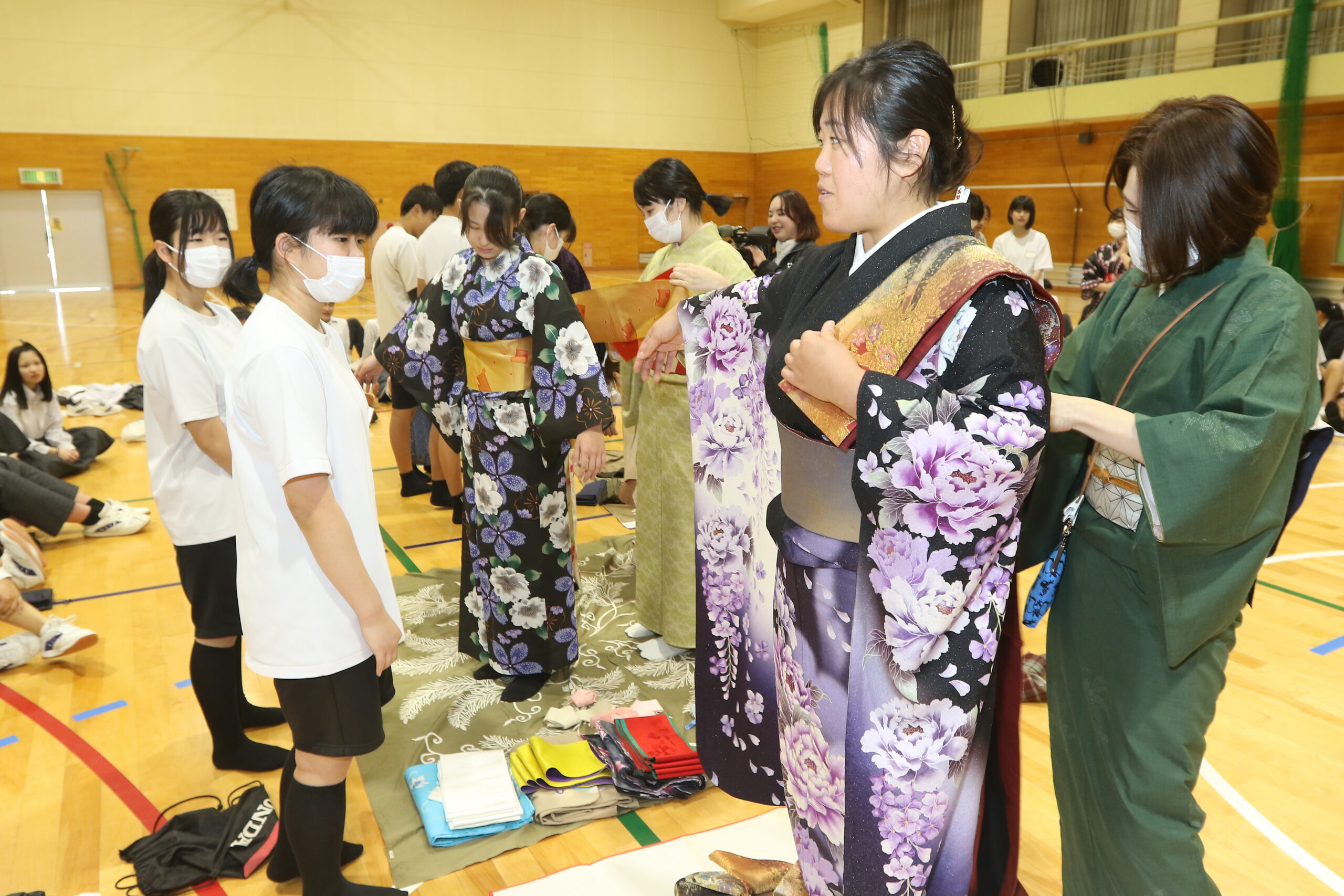 鈴鹿市の大木中学校で13日、3年生約100人が和服文化を学ぶ授業に取り組みました。