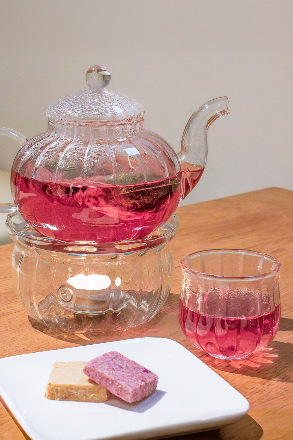 カフェスペースも併設されており、芍薬の華やかさを感じさせるピンク色が印象的な芍薬花茶(800円)、芍薬の花を練り込んだ米粉クッキー(200円)などが提供されます。生ハーブの入った液体に重曹とクエン酸を自分で加えるドリンク作りや、ラベンダーなどのハーブやスパイスを砂糖で漬け込むコーディアルシロップ作りといった体験も用意。医薬のプロが手掛ける“身体を整えるカフェ”としてリラックスしたひとときを過ごせます。
