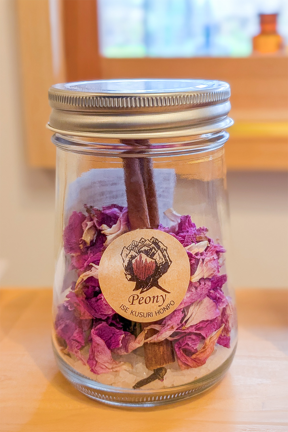 店内に並ぶのは、VISONのロゴマークのモチーフにもなっている芍薬(しゃくやく)を使用した化粧品やハーブボールなど。鈴鹿市に約2ヘクタールの芍薬畑を構え、農薬や化学肥料を使わず栽培したものを原料としています。甘草湯には相可高校生産経済科の生徒が育てた原材料も活用されるなど、地域との連携も進められています。今後はオリジナルハーブティや入浴剤作りのワークショップも予定しています。