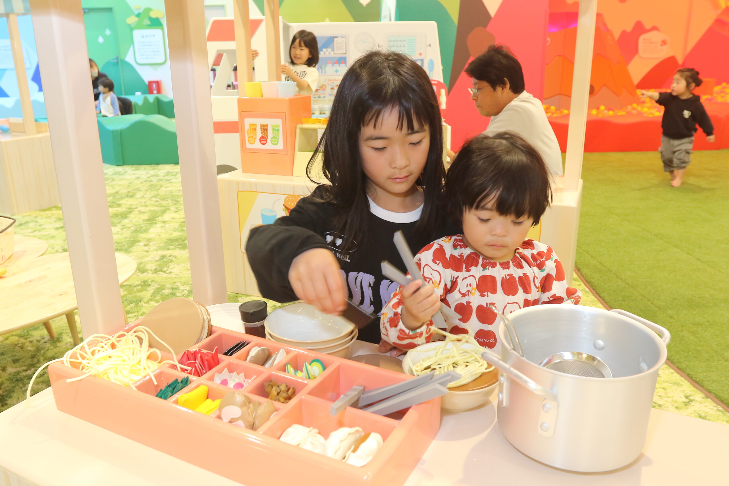 都市エリアではアイスクリームショップ、ラーメン屋などの店舗遊び、三輪車やホイールライダーなどの乗り物も。定期開催の持続可能な開発目標(SDGs)や自然の大切さを学べるワークショップなど盛りだくさんです。