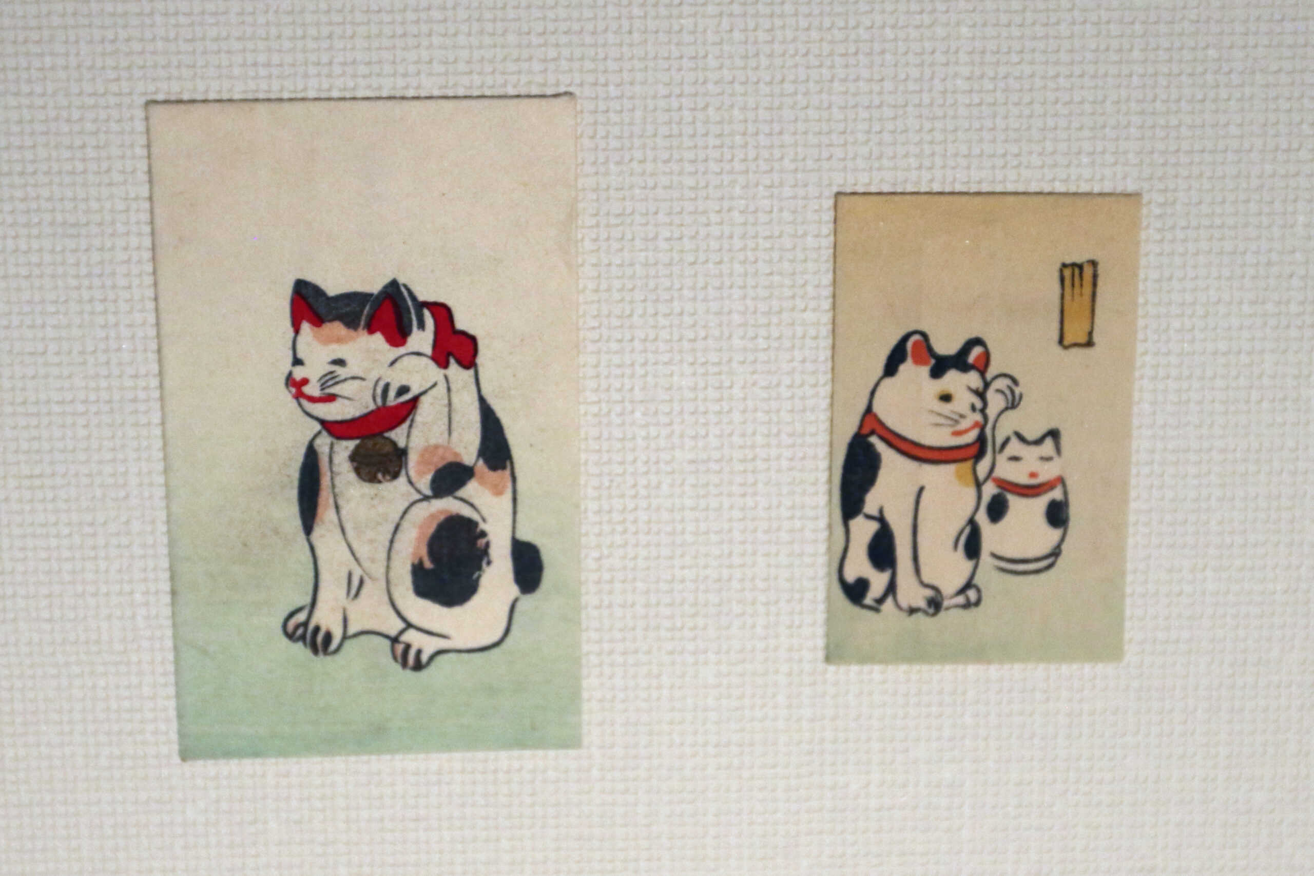 色彩豊かな河鍋暁斎の『牡丹』、川端玉章の『貝合わせ』を用いた千代紙、川瀬巴水の姫路城を版画絵を使ったうちわ、竹下夢二直筆の書簡や綿毛が飛ぶ様子を描いたタンポポのうちわ絵、江戸の俳人宝井其角の句を基にしたことわざをデザインしたぽち袋など約250点が並びます。